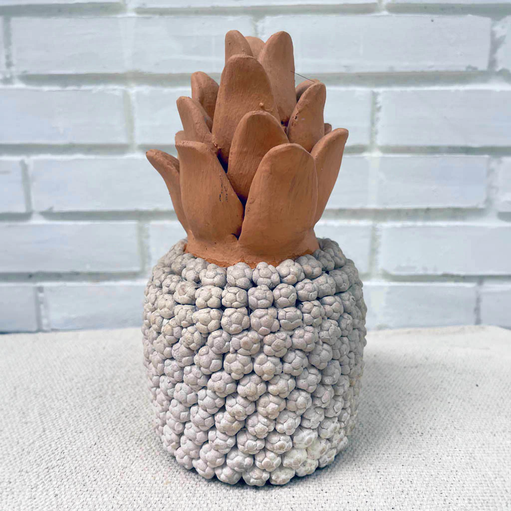 Abacaxi em cerâmica esculpida por Zezinho Neto, neto de mestre Zezinho de Tracunhaém.