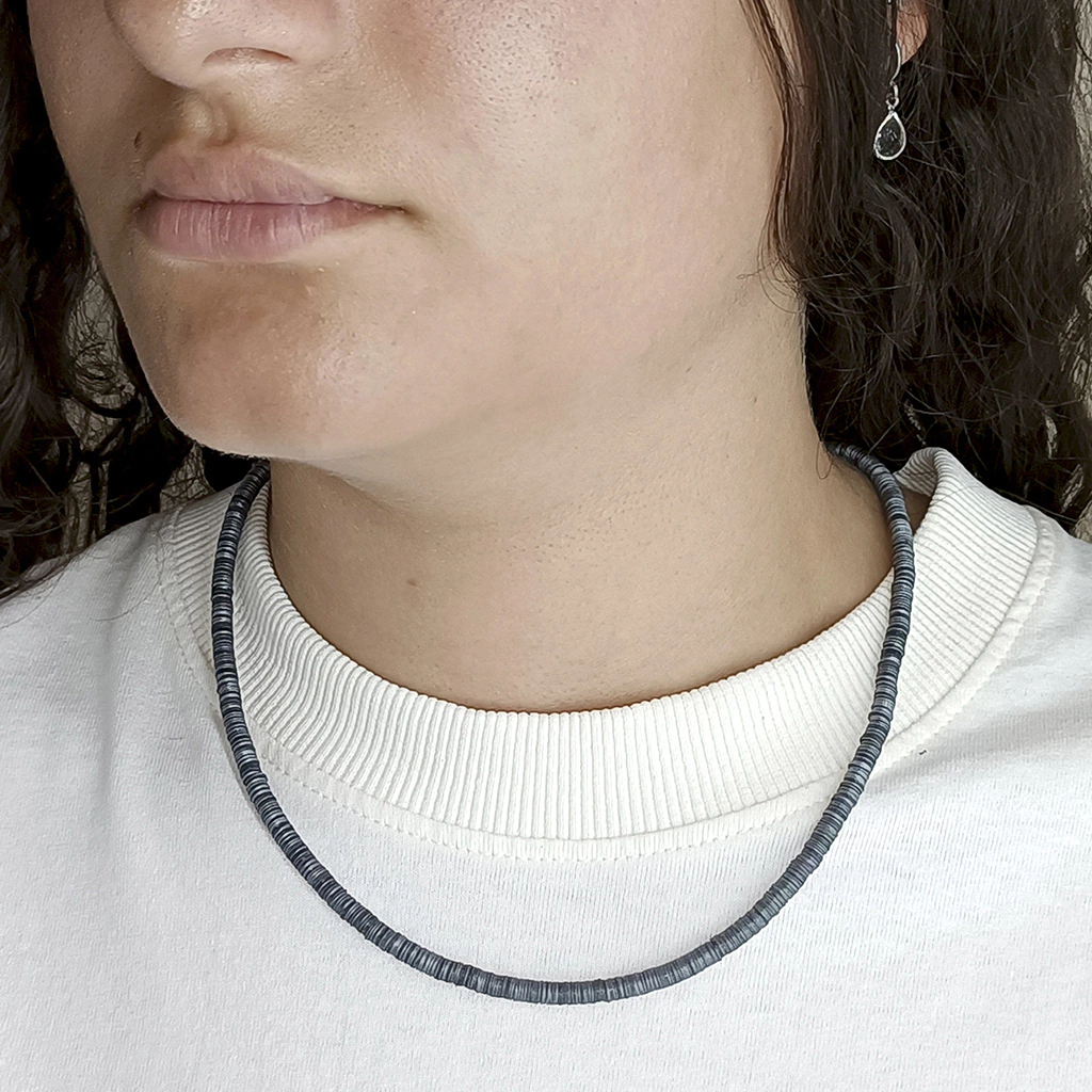 Colar com Paetês Reutilizados na cor grafite * Alex Cassimiro * Estúdio M A R C H A