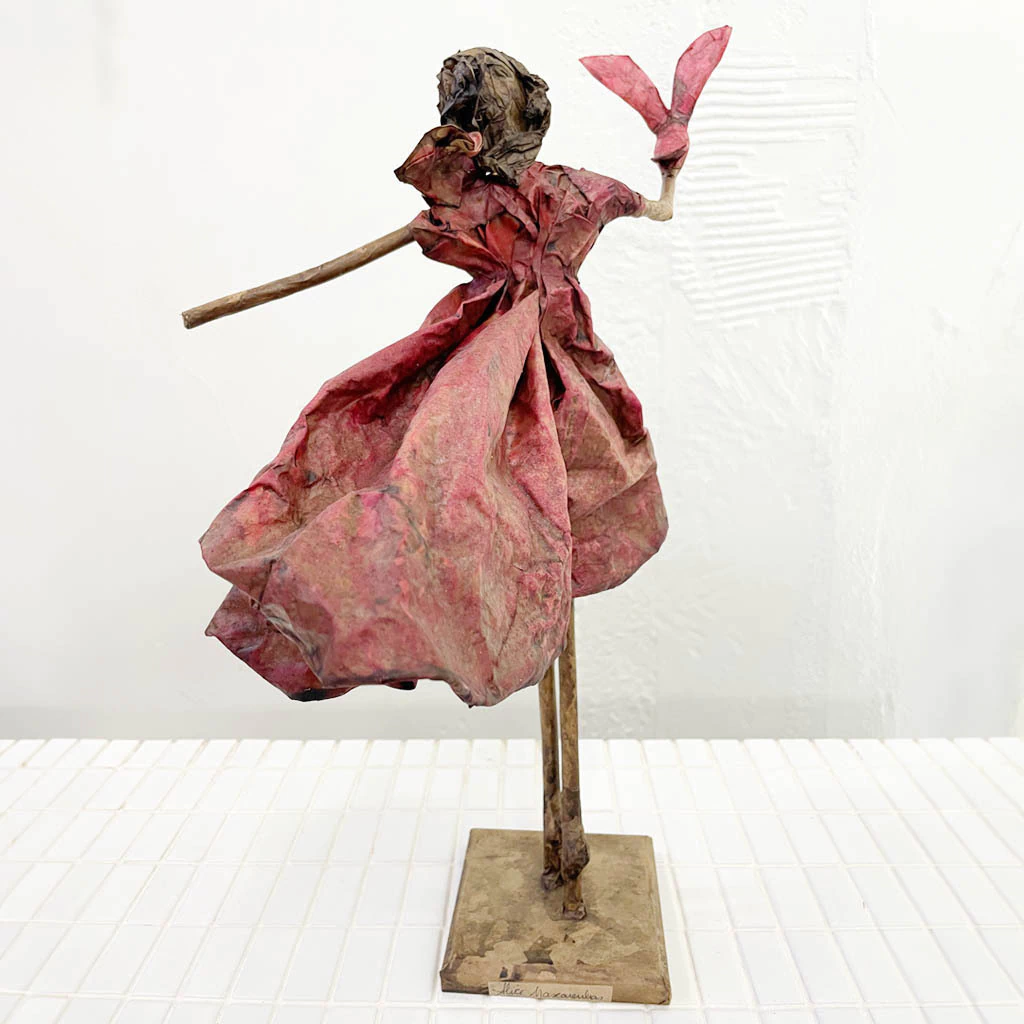 A artista mineira começou a trabalhar com as esculturas em 2007. É autodidata e desenvolveu sua própria técnica. Suas esculturas são feitas em papel reciclado do saco de cimento, com as mãos, criatividade e amor.