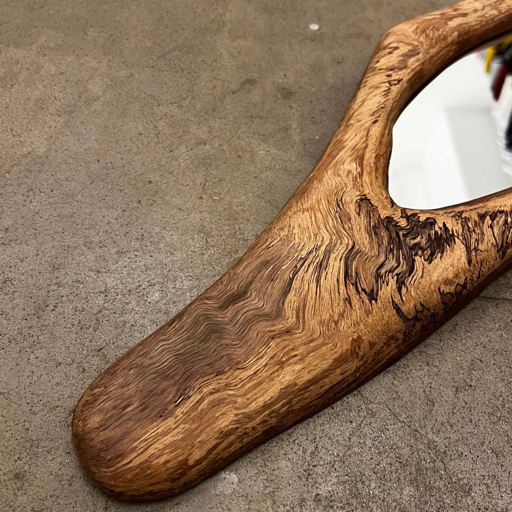 Seus trabalhos usam madeira de reaproveitamento que ele recolhe pela sua cidade e por outras por onde passa. O resultado está entre o design da funcionalidade e a escultura artística.