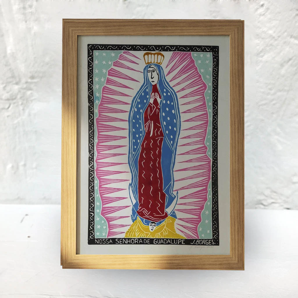 J. Borges is one of the most famous engravers in Brazil. Born in 1935 in Bezerros (PE), where he lives and maintains his studio, he has been producing since he was 21 years old. In the 1970s, he made the cover of a book by Uruguayan Eduardo Galeano and saw his works used in the opening of a television soap opera. Since then, his work has been exhibited in museums and galleries in Brazil, America and Europe, and his presence in the publishing market has become constant. His work has varied themes, but always with references to the universe of the Brazilian Northeast, to the aesthetics of Cordel. Produces engravings in large quantities and in different sizes. Bright colors are a striking feature, but there are also monochromatic designs. His lines and motifs were widely copied and defined the style of engraving production in rural Pernambuco.